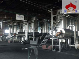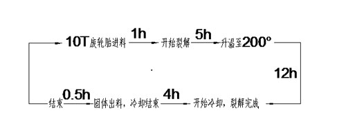 10噸輪胎人工投料也僅需1個小時就能完成。再經(jīng)過17個小時左右的裂解反應,除燃料油、可燃氣外還會分離出炭黑和鋼絲。反應釜停止加熱后,設備采用風冷的方式,通過風機不斷抽走爐體及生成物的熱量,冷卻工段時間約為4個小時,待釜內溫度降至80度左右時,操作人員啟動釜內攪動裝置,同時出料口自動閥門打開,分離出的炭黑和鋼絲會自動落入下方的密閉輸送系統(tǒng)中,轉運至炭黑車間另行磁選、分離、粉碎、改性等增值深加工處理。出料過程僅需30-45分鐘。整個裂解過程需要23小時左右。